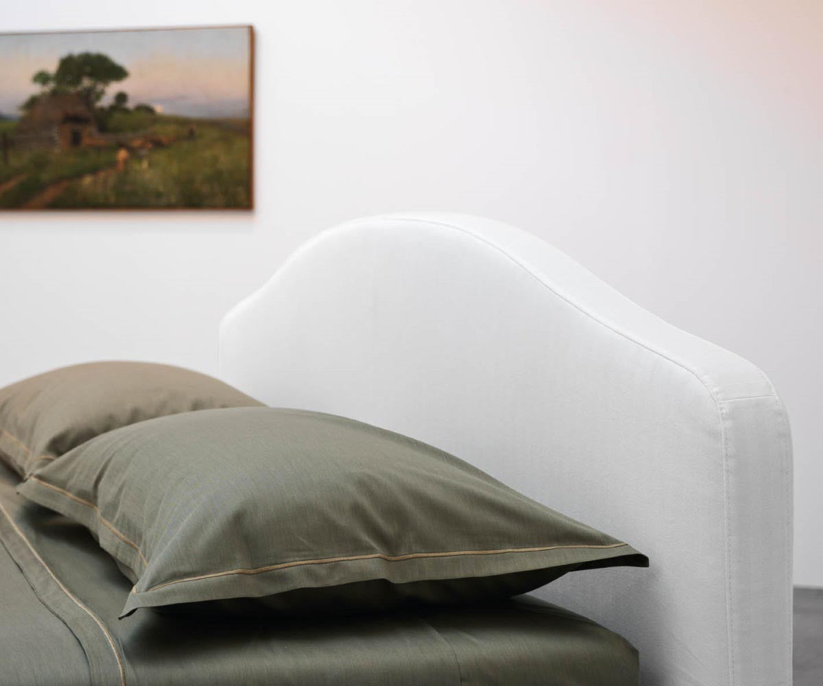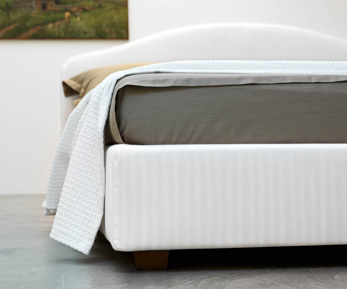 Elba is a padded bed upholstered in leather, fabric or eco-leather, available with or without double opening storage container. The cover is removable for cleaning. The bed frame can be disassembled for easy transport. The angular support plates of the bed base are height-adjustable to position the mattress by inserting it into the bed frame (only in the version without the storage container). The bed feet are made of solid beechwood. See Feet Colors here.